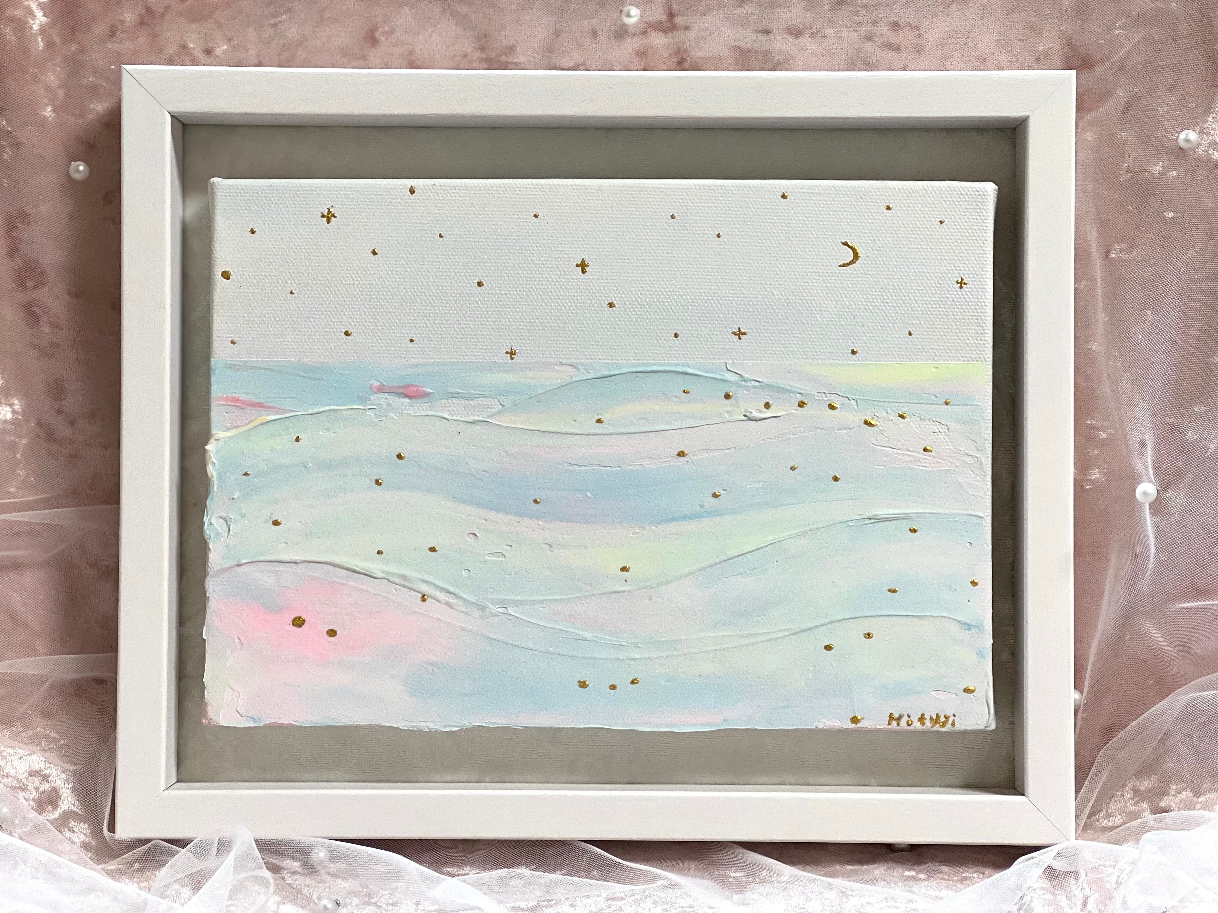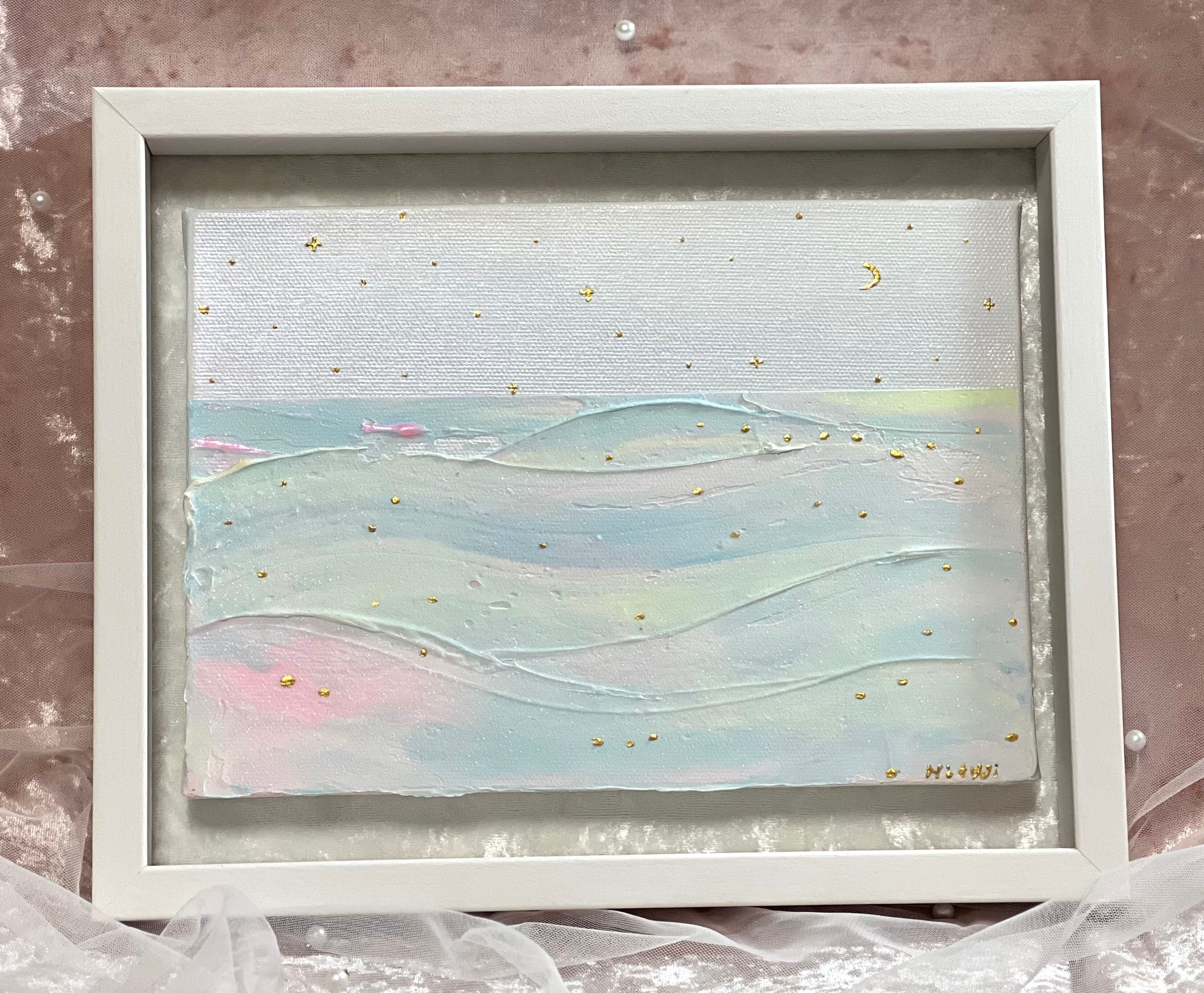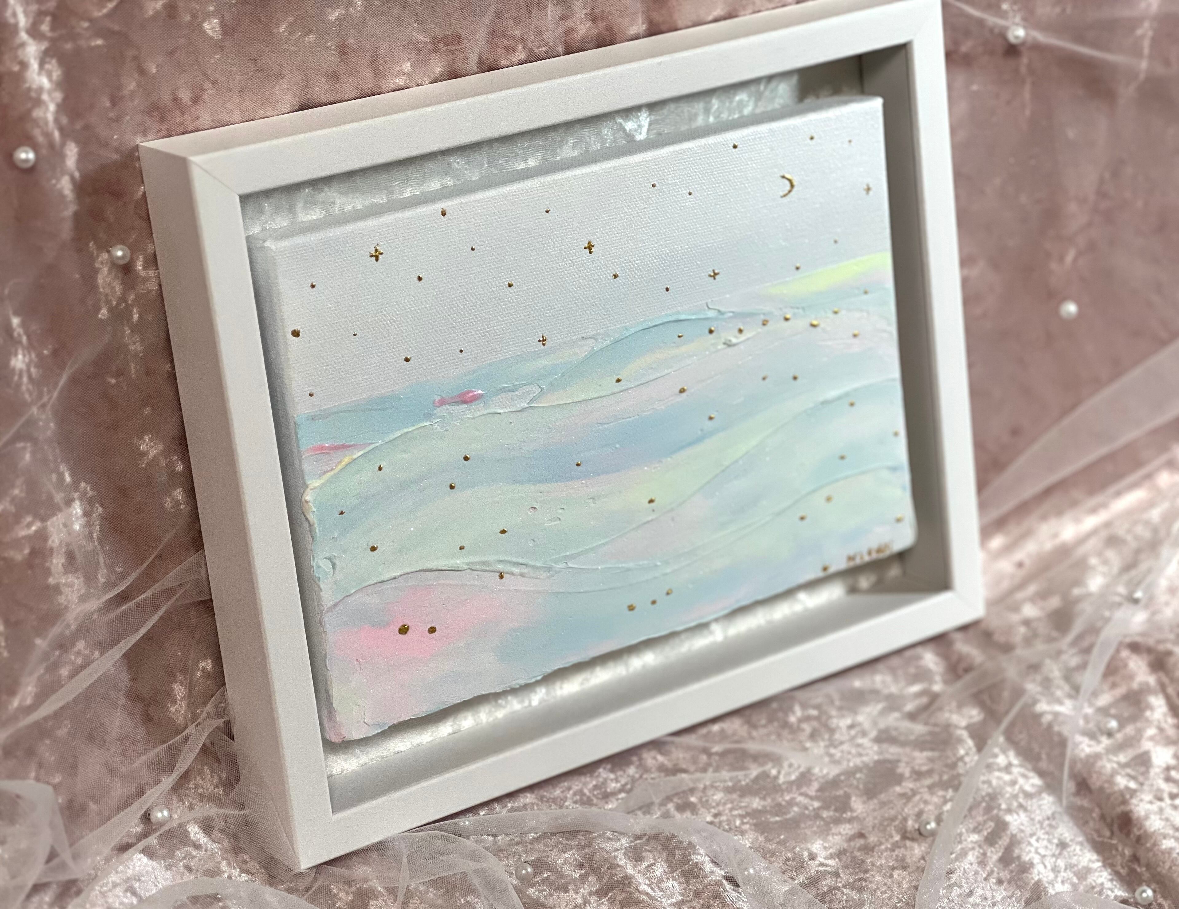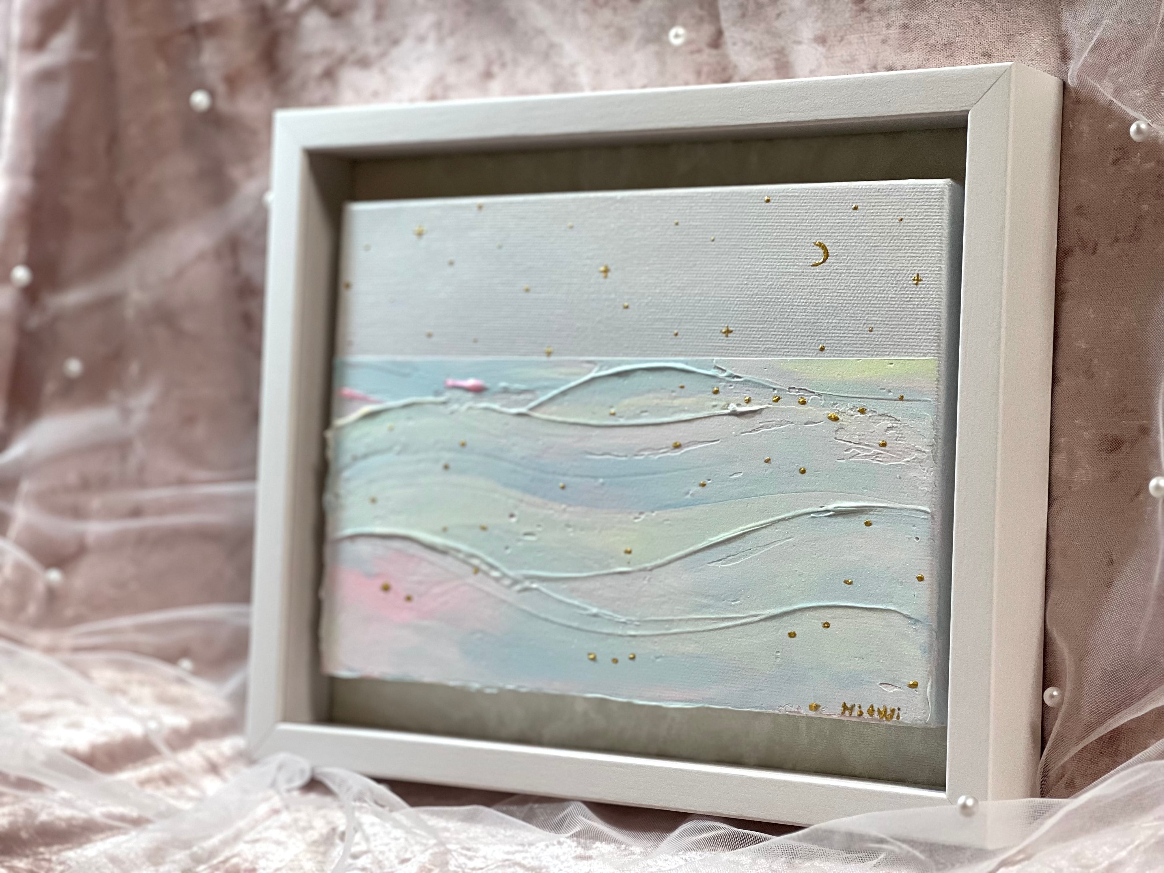 飾りやすく、作品の品格を高めてくれるインチサイズの額縁に収めました。「今日もお疲れ様。また明日も、あなたらしく輝けますように。」そんな願いを込めて、一点ずつ丁寧に描き上げました。
