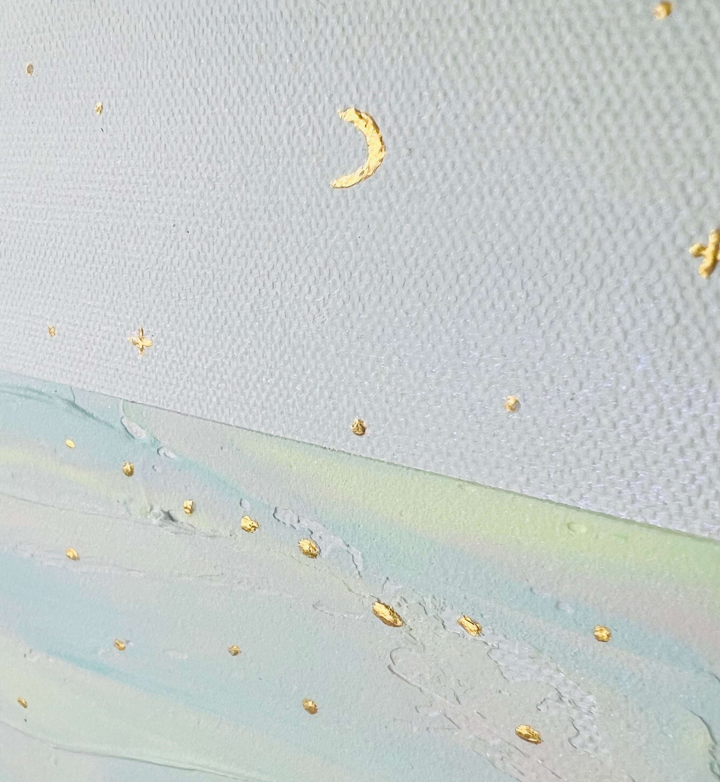 落ち着いた地肌の上だからこそ、散りばめられた金沢の金箔、24K(純金)**の星屑や波間の輝きが、