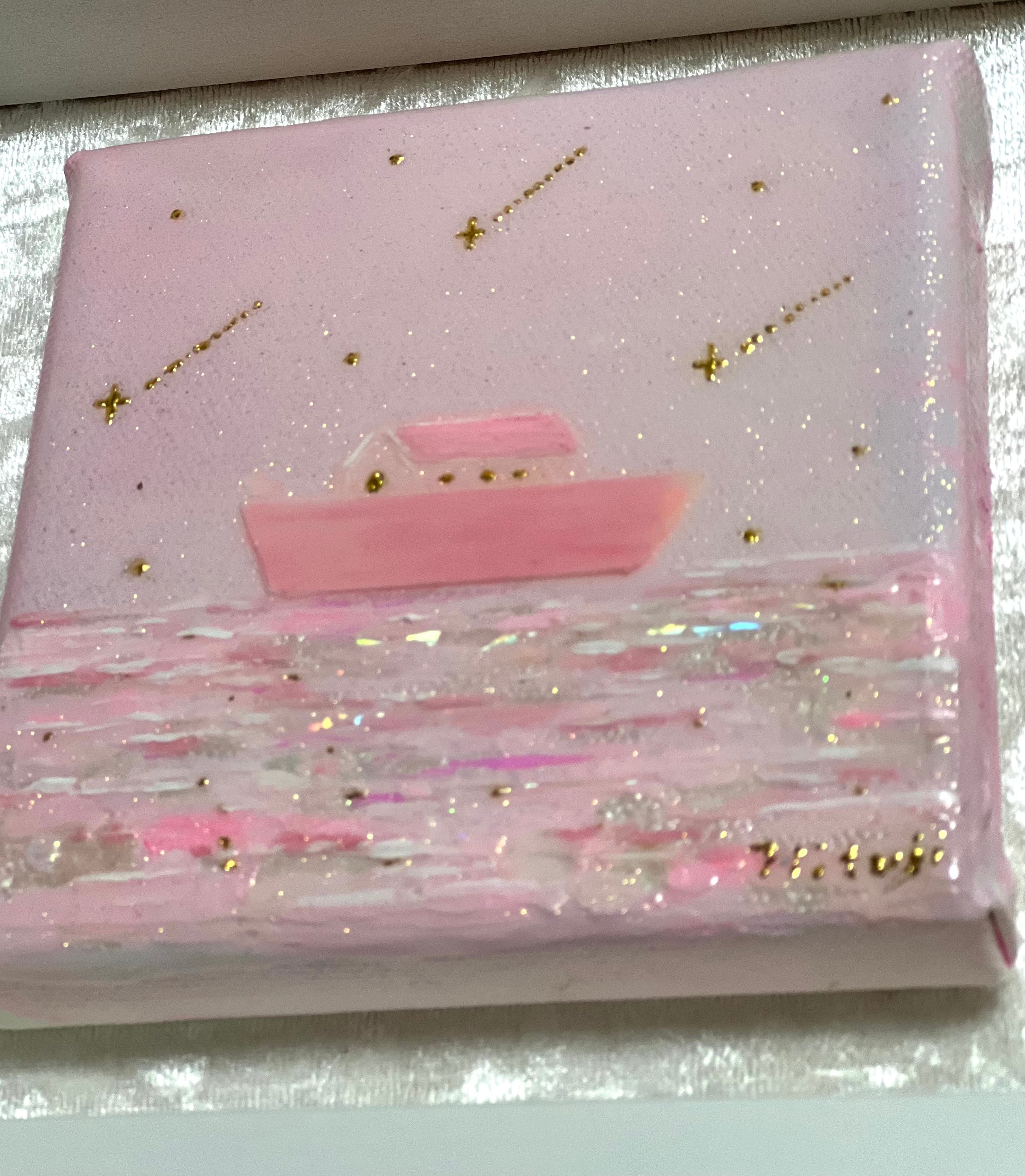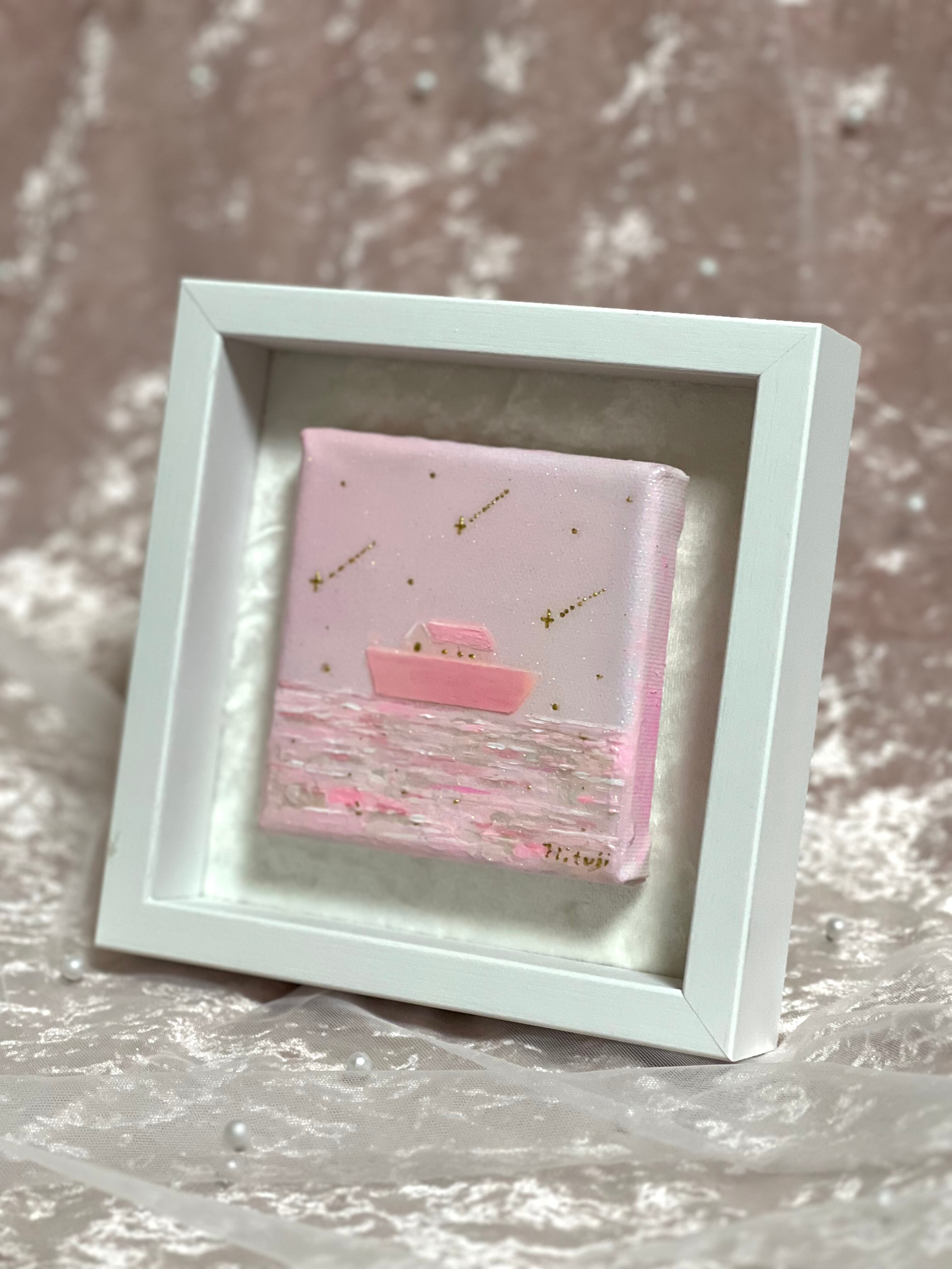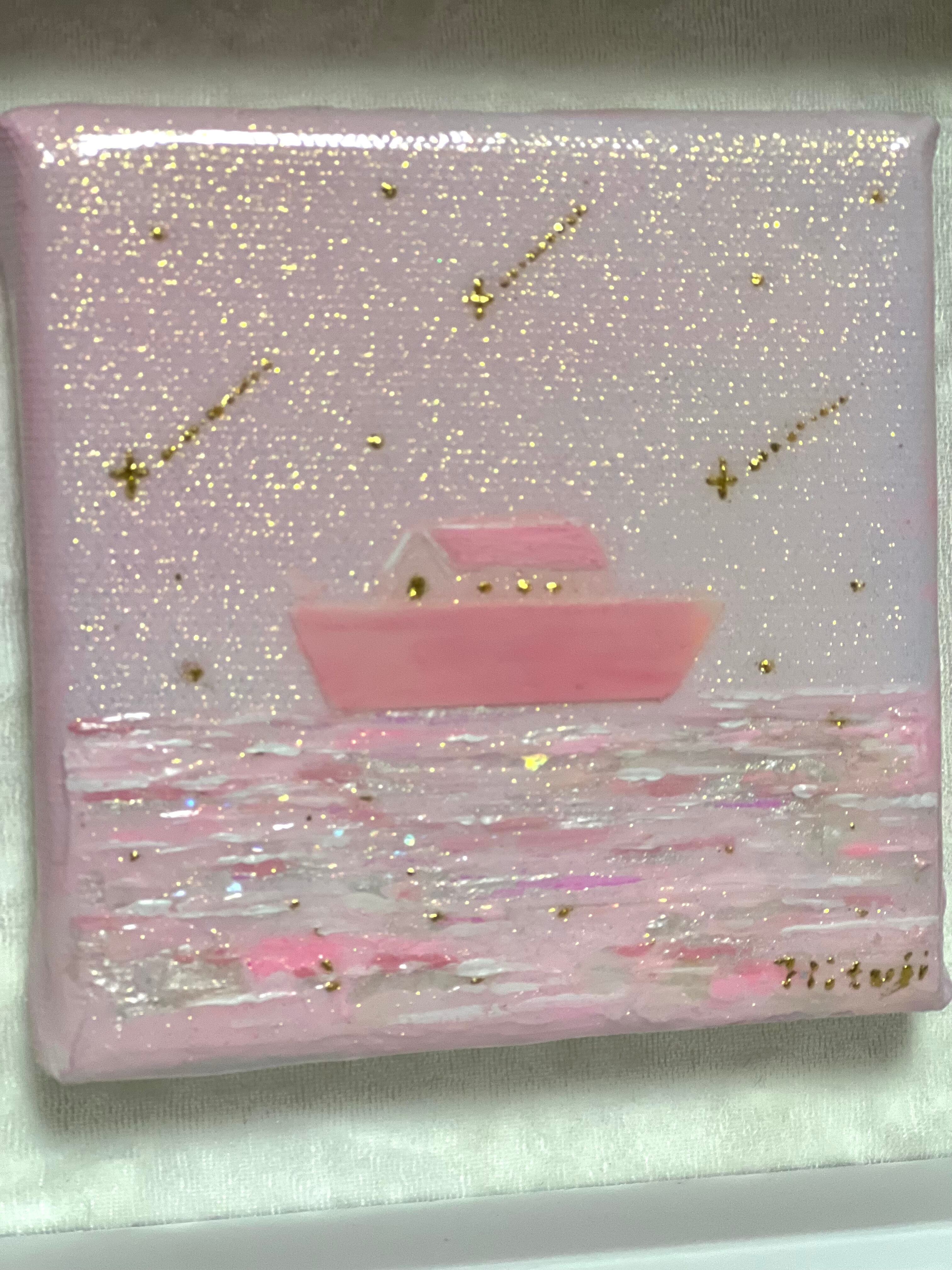 荒波を乗り越え、静かな祈りとともに進む箱舟の姿を、柔らかな色彩と繊細な輝きで描きました。